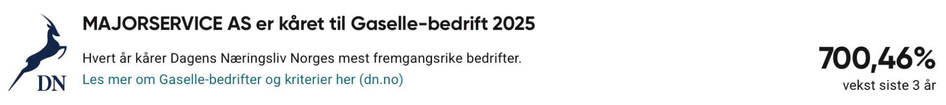 MAJORSERVICE HAR BLITT EN GASELLE-BEDRIFT FLERE ÅR PÅ RAD